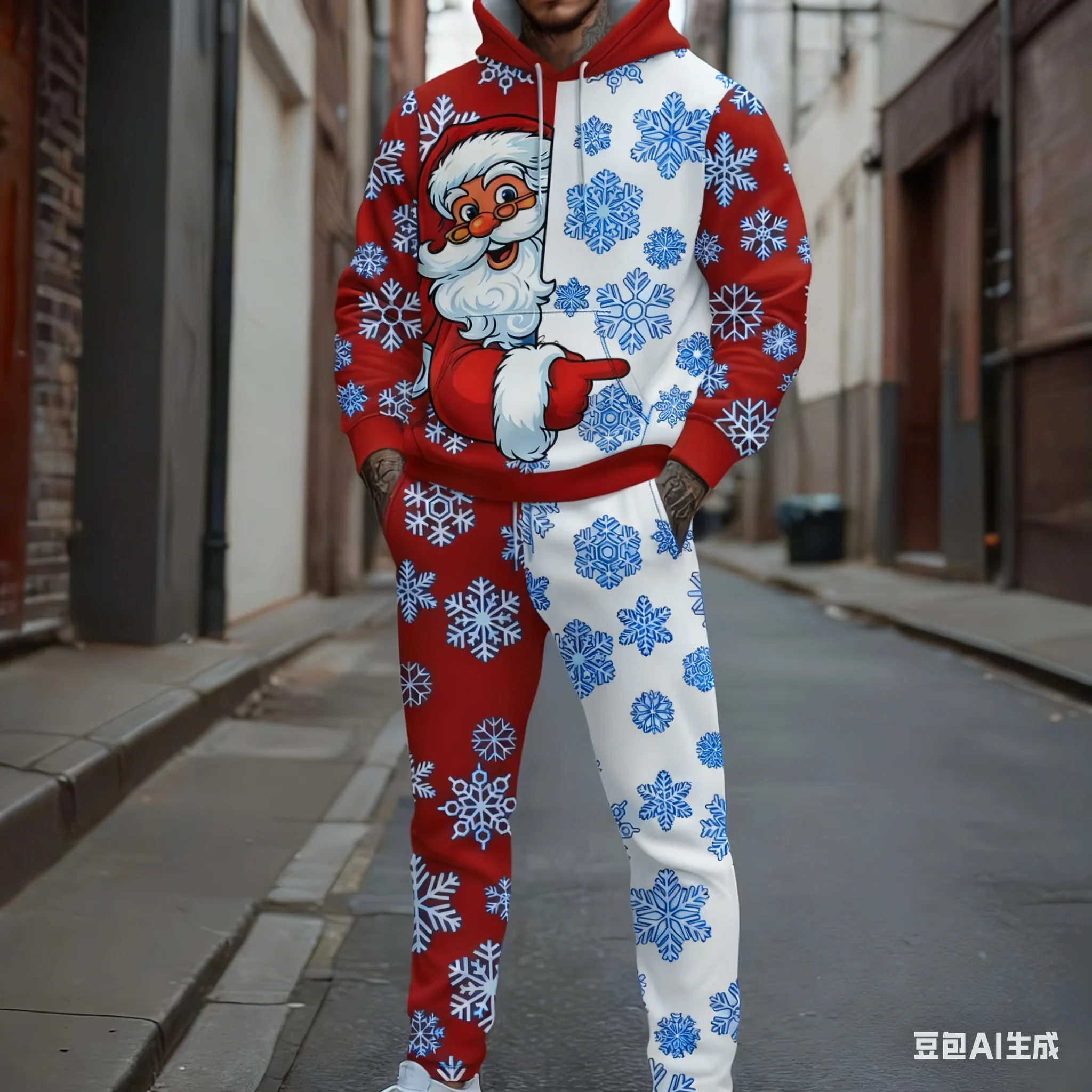 가을 크리스마스 산타 클로스 3D 인쇄 남성 후드티 정장 캐주얼 패션 오버사이즈 스웨트셔츠+스웨트팬츠 2피스 세트 의류