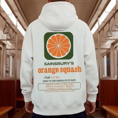남성 기모 후드티 오렌지 프린팅 후드 스?셔츠 WFMAPZS