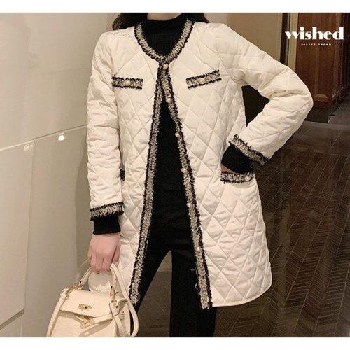 [위시드]윈터 트위드 다이아 퀼팅 패딩 롱 점퍼 (WIADJP050)