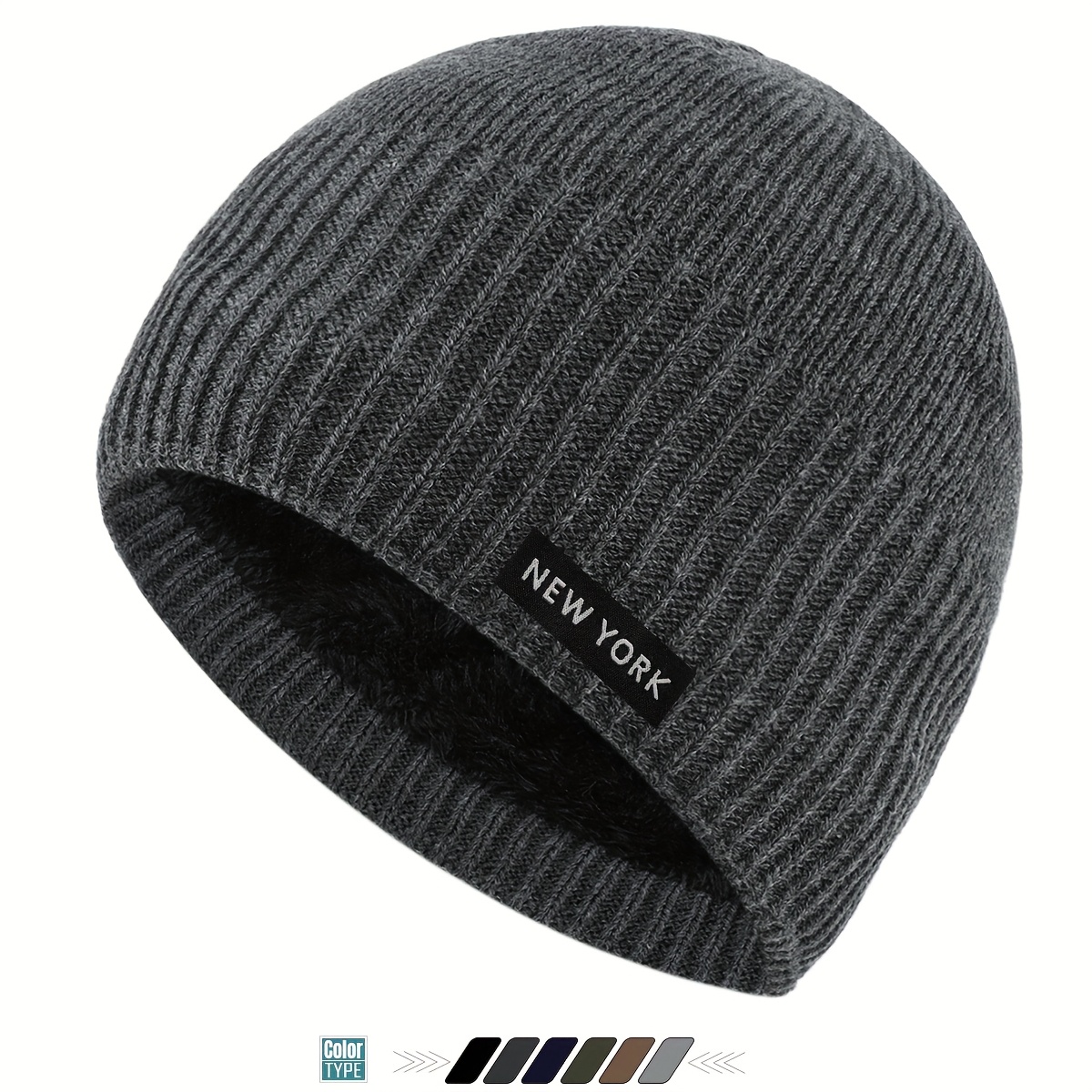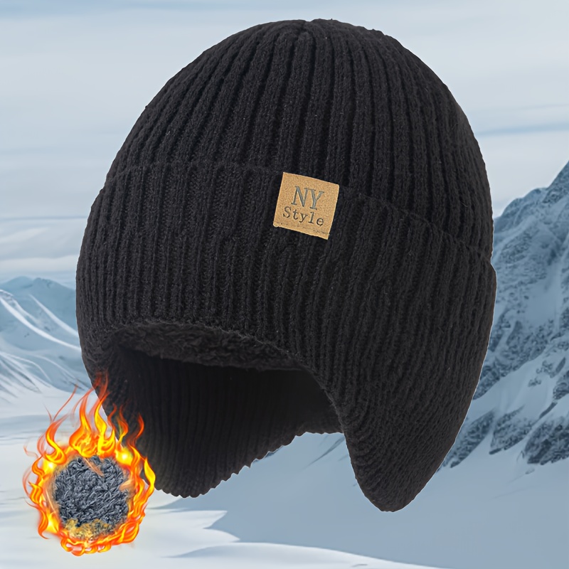 TEMU 1개 뉴욕 라벨 플러시 비니 모자 - 뉴욕 태그 포함, 가볍고 따뜻한 겨울 모자, 스키, 크리스마스용 - 남녀공용 아웃도어, 손세탁 가능, 휴일 선물 (테마)