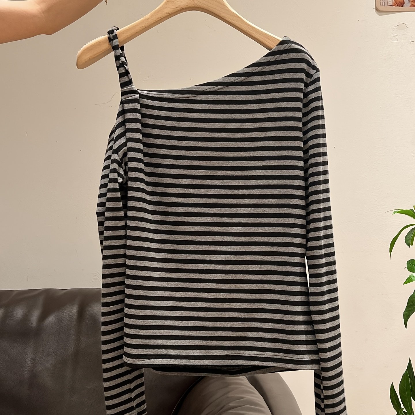 TEMU 여성용 오프숄더/슬림핏 라인 티셔츠 - 코리안 스타일 긴팔 베이스 탑, 비쉬어 블라우스 봄/가을 레이어링용, 핸드워시 가능 코리안 버전 패션 셔츠