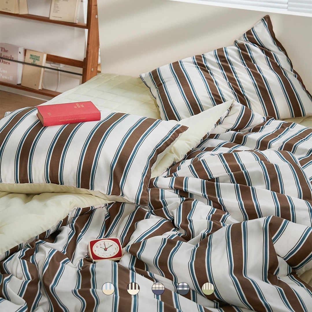 사박사박한 노스텔지아 드림 60수 고밀도 순면 스트라이프 차렵이불 세트 SS/Q 2컬러