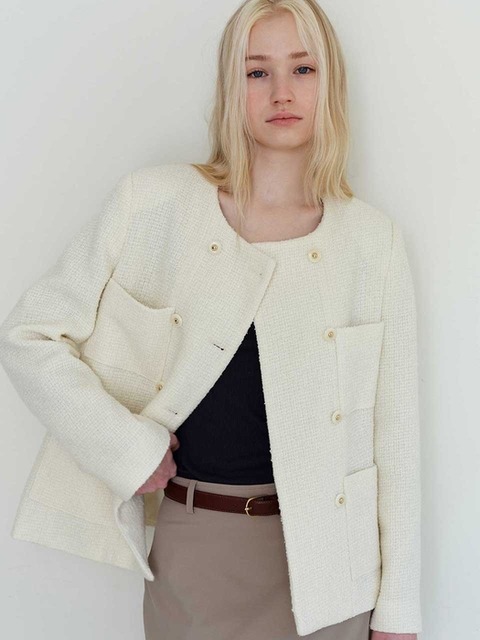 [멜로디가든]아이보리 포켓 트위드자켓 (M25S2J102 아이보리)_CA