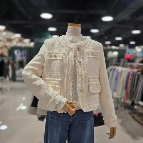 질스튜어트 뉴욕 여성 25SS 시즌오프 인기상품 리오더 아이보리 짜임 소매 커프스 울혼방 트위드자켓 JSJA5B140IV