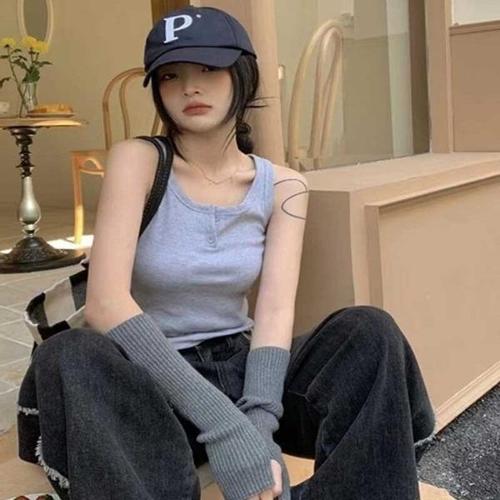 JBHLZXCP 여성용 민소매 나시 슬림핏 골지 니트탑 탄탄 골지 니트 나시 티셔츠 쿨니트 나시이너티