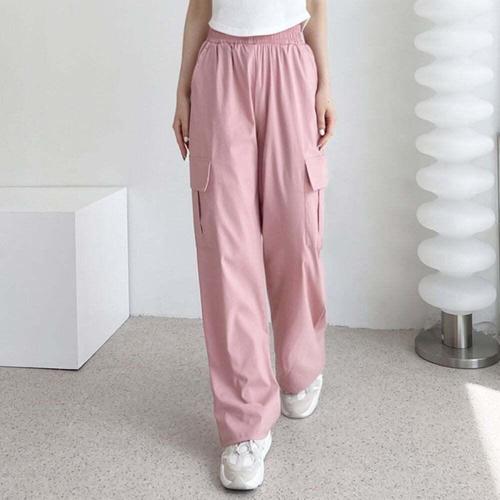 [셀럽하우스]데일리 VRDJ3968 아이스쿨재질 여자 카고 와이드 밴딩 팬츠