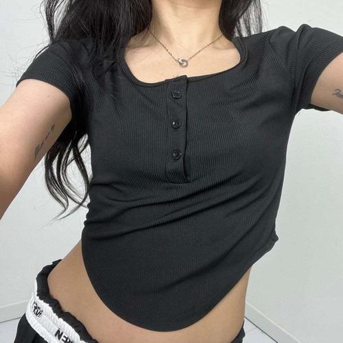 [셀럽하우스]당출 YSJT2964 쿨 아이스실크 기본 단추 크롭티