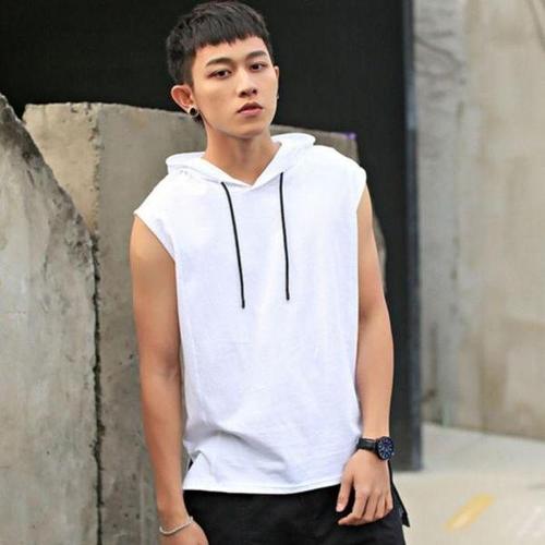 [셀러허브_여성트랜드패션]쿨 민소매 아이스 원단 남자티 여름 남자반팔티 남성티 후드 티셔츠 후디