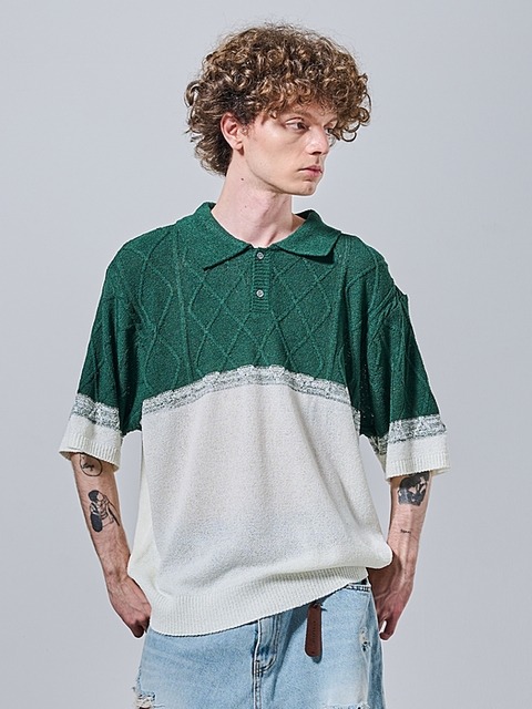 [아더피츠] 하프 배색 카라 반팔니트 (그린)