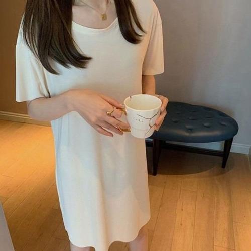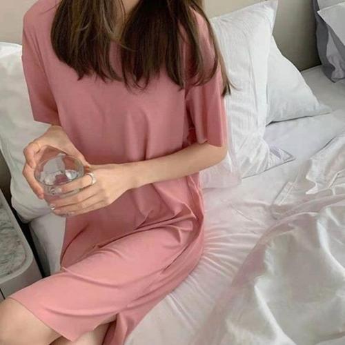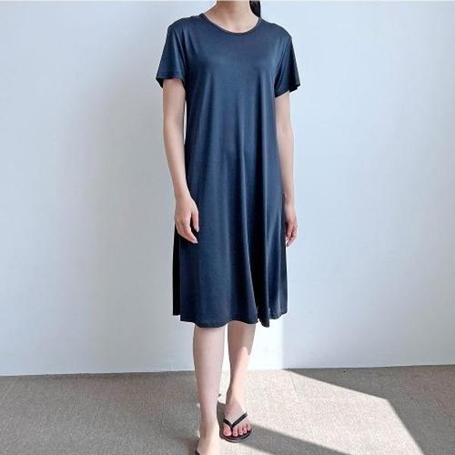 [엄지척]여름 시원한 아이스 쿨 홈웨어 레이온 롱 반팔 원피스_19871083_667501