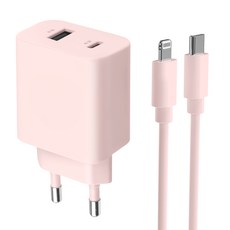 모잇 PD25W 2포트 PPS 초고속충전기 + 8핀 라이트닝 아이폰 케이블 1.3m, 핑크, 1개