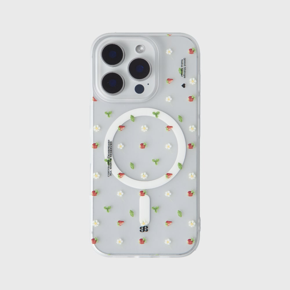 스트로베리 플라워 맥세이프 반투명 하드 아이폰케이스 17 16 15 14 갤럭시 S25