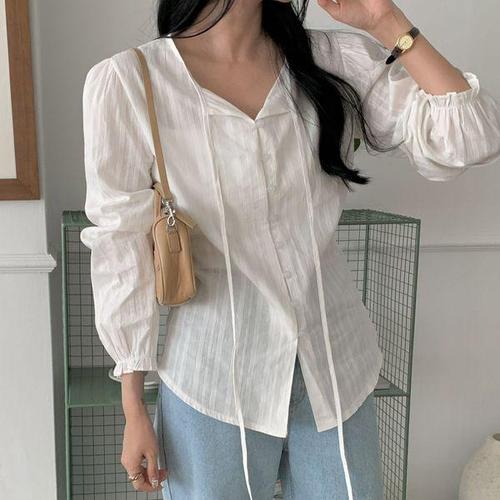 나야홍 / 아이우먼 브이넥리본끈블라우스 BNV362M509 빅사이즈