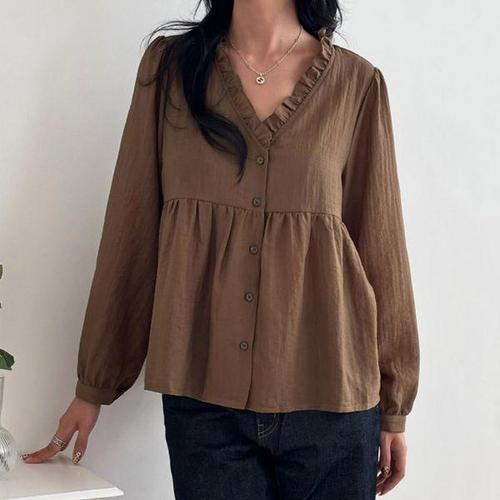 나야홍 / 아이우먼 세련된프릴넥블라우스 YPV669M511 빅사이즈