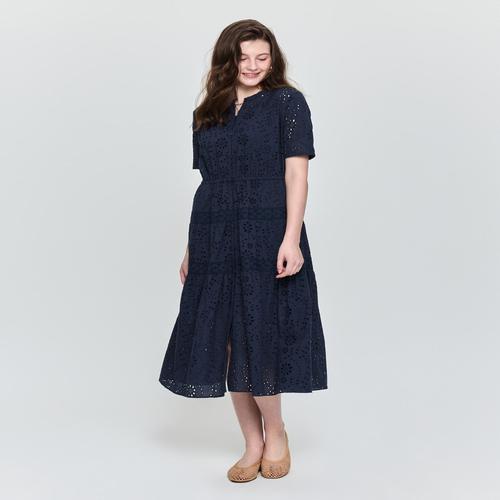 헤지스 여성 라운드넥 아일렛 티어드 반소매원피스 네이비 (HSDR5B305N2)