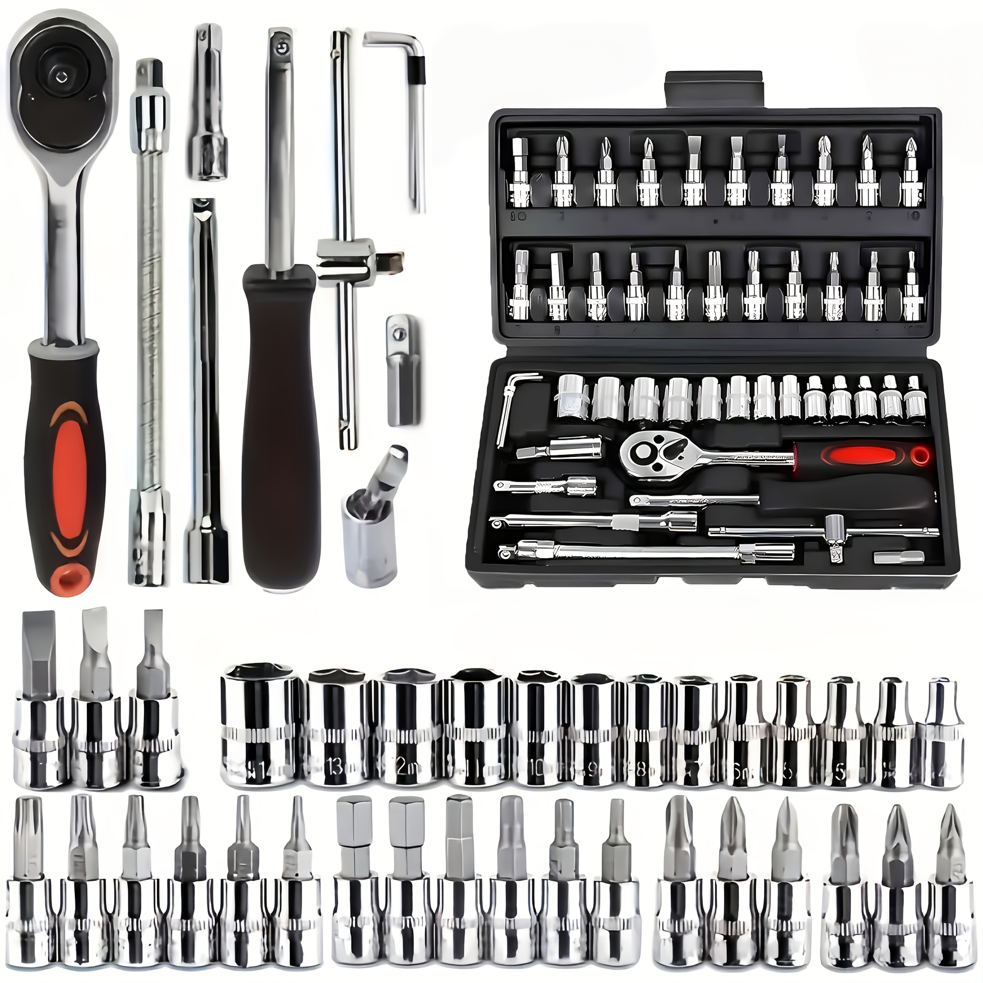 TEMU 46pcs 크롬 반니듐 스틸 얼티메이트 자동차 수리 도구 세트 - 고 토크 렌치 세트, 소켓 및 연장 바 - 자동차 유지보수, 가정 수리 및 DIY 프로젝트에 완벽