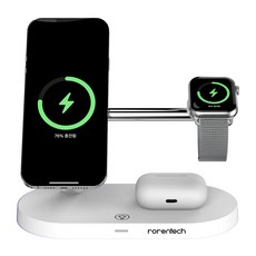 로랜텍 아이폰 애플워치 에어팟 맥세이프 고속 무선충전기, 화이트, 1개