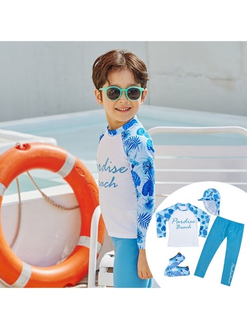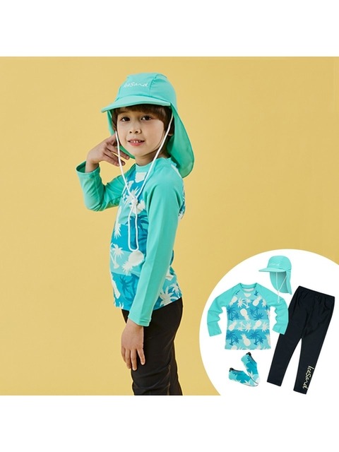 [아이스샌드] 아이스샌드 키즈 아동 래쉬가드+플랩캡+아쿠아슈즈 4피스 수영복 세트 BR-91008K