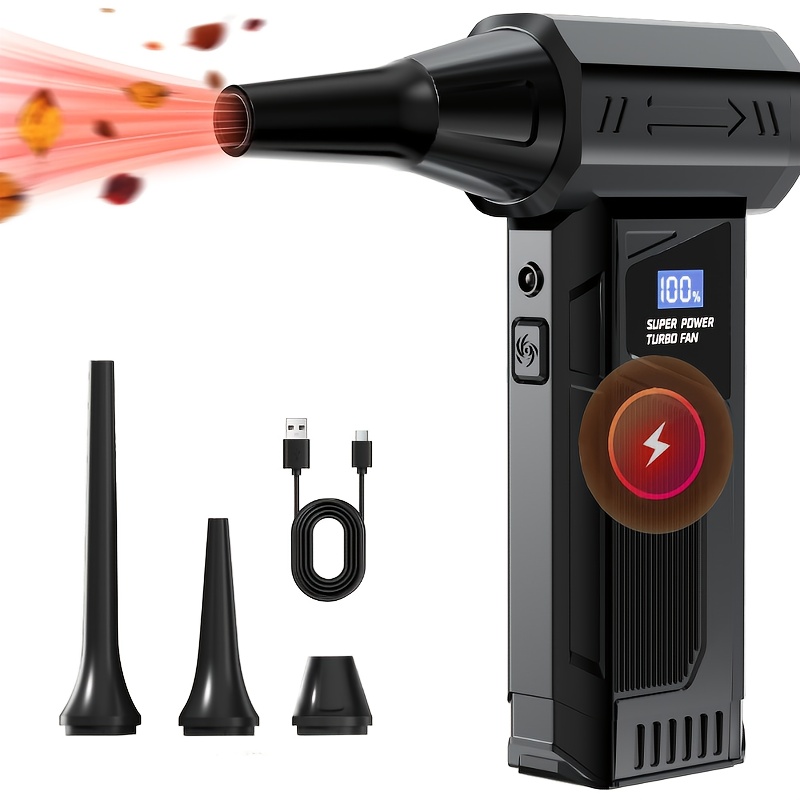 TEMU AOSTOK 산업용 - 압축형 - 110,000 RPM 고속 블로워/진공청소기 기능, 4단계 속도 조절, 충전식 미니 블로워 LED 라이트 포함, 컴퓨터, 키보드, 자동차 및 가정 청소용 (블랙)