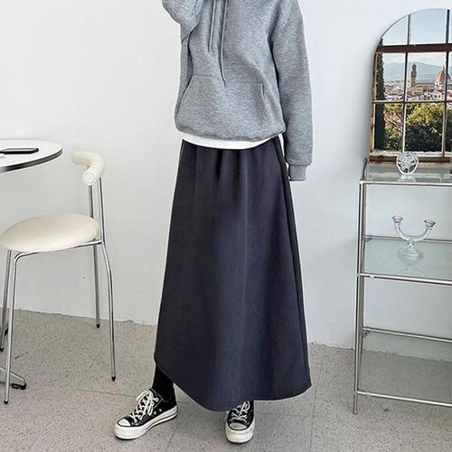 [에이치플러스몰]립 기모안감 코듀로이원단 뒷트임 맥시 스테디미니스커트