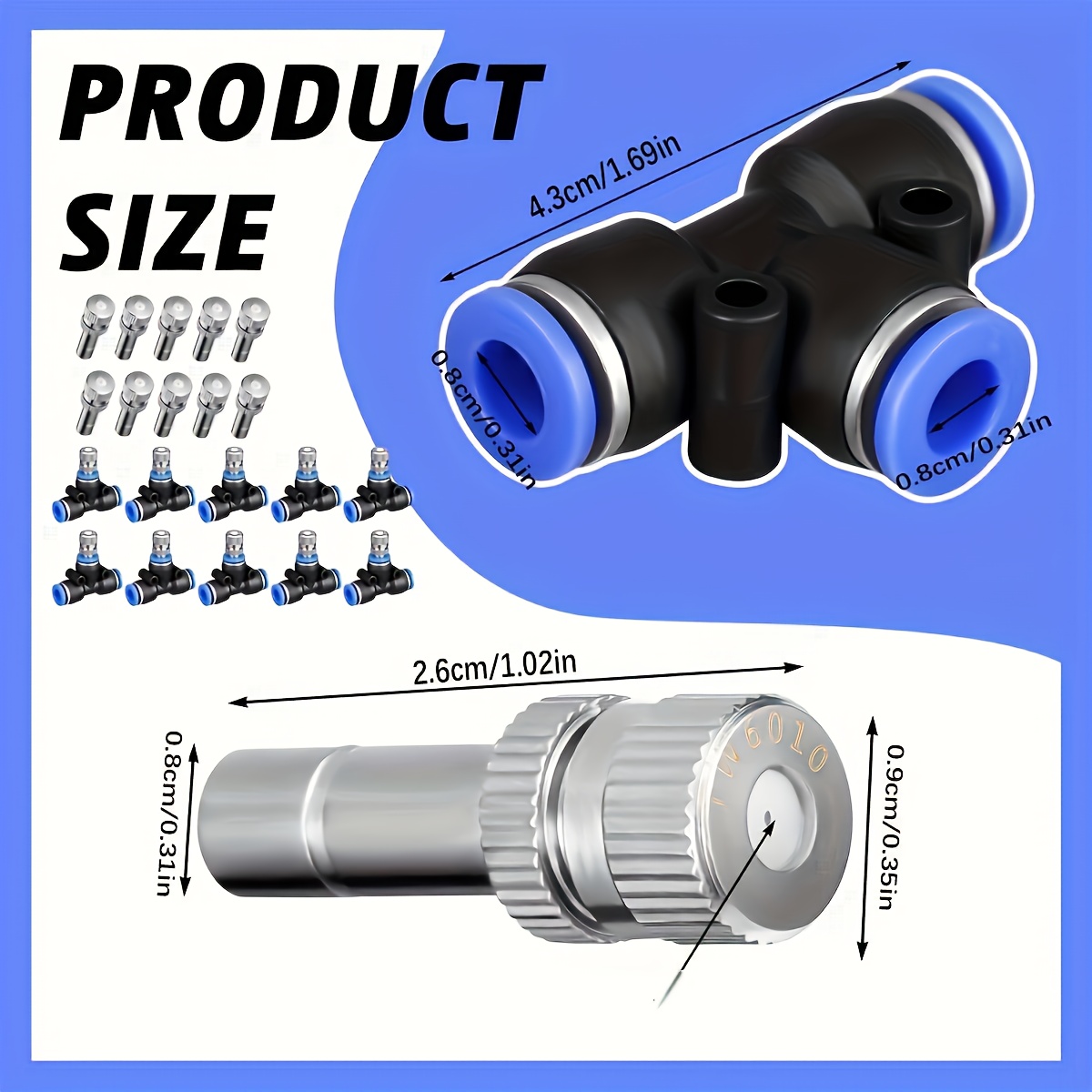 TEMU 20개 스프레이 노즐 키트, 1/4" 물 미스트 시스템, 8mm 황동 스프레이 헤드 및 커넥터 포함 - 야외 냉각 시스템, HVAC, 장치, DIY 설치용 헤비듀티 플라스틱 노즐 (물 미스트 팬, 증발식 쿨러 호환)