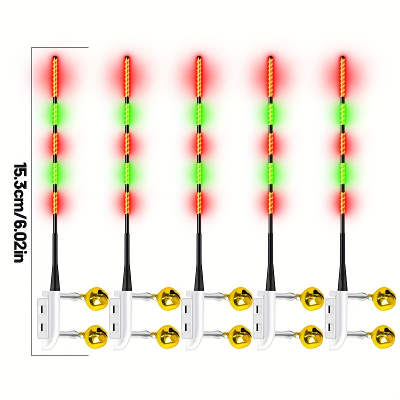 TEMU 5개 낚시대 팁 라이트, 낚시 벨 소리를 포함하여, 어둠 속에서 빛나는 막대, 더 밝은 빛으로 보이기, 물고기 물림 지시 색상 변경, 미끄럼 방지 및 내충격성, 낚시글로 알람, 저조도 환경에 적합한 범용 제품, 낚시대 글로 알람 (배터리 포함되지 않음), 배터리 없음