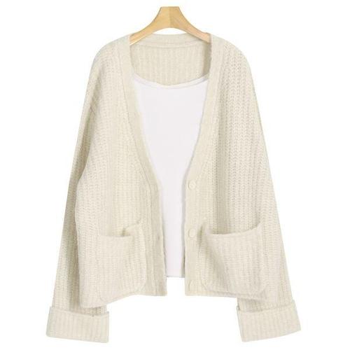[샵앤]여성 단추Y오픈 알파카 루즈핏 세미크롭 울 니트 가디건 FR.B-WCD-1663-오트밀