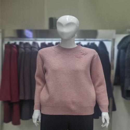 [베아뜨리체]반폴라넥 비즈 앙고라 플라워 니트 풀오버 블라우스 BSWBL6570