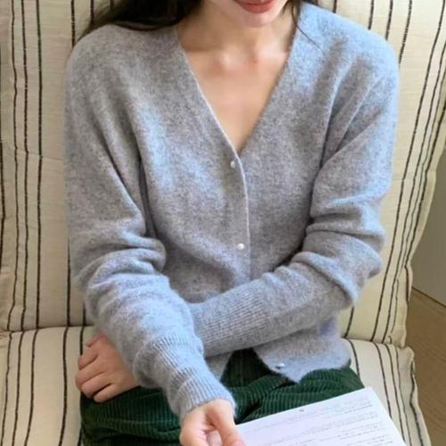 [신상오픈런]여성 파스텔 앙고라 브이넥 진주 장식 니트 카디건
