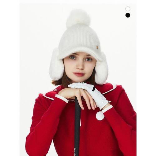[듀빅]여성 앙고라 니트 퍼 귀달이 골프모자 DF4WAP792OW