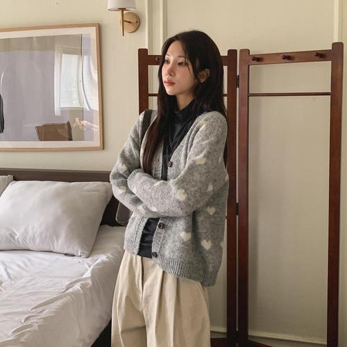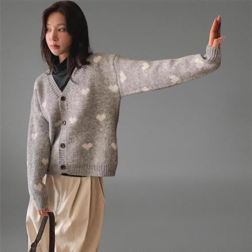 [옷자락]여자 앙고라 하트 루즈핏 브이넥 니트 가디건