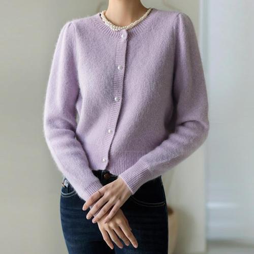 [스타일온미][스타일온미] 데이링 진주 버튼 보드랍고 포근한 감촉의 앙고라 니트 가디건