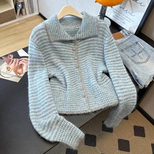 [페이릿][페이릿] 핀 스트라이프 앙고라 카라 가디건_