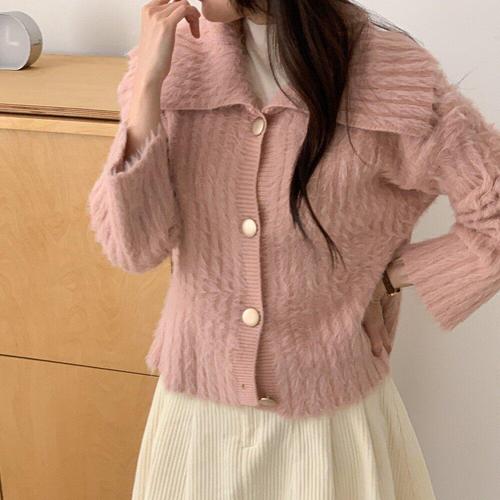 [옷자락] 여자 겨울 앙고라 빅카라 퍼니트 골지 버튼 가디건