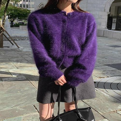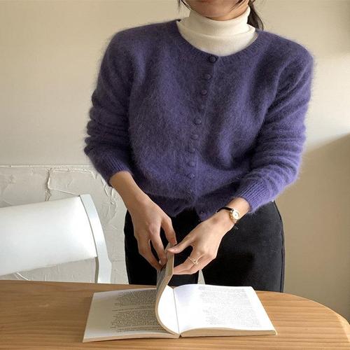 [보니제이]포근 여성가디건 크롭 보들 앙고라 V넥 아우터 털니트