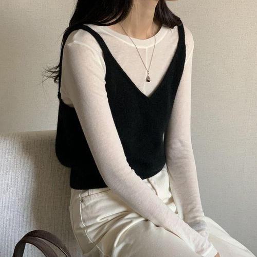 울함유 (울앙고라/레이어드필수/미니멀) 아비엘 앙고라 울 니트 뷔스티에 vs503