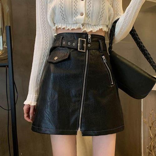 [오너클랜]인기상품 여자 앞 지퍼 포인트 가죽 스커트 숏 미니 레더 치마 [WC2D966_250918]