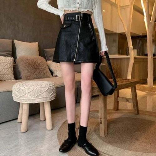 [셀럽하우스]예쁜 NLWF1590 앞 지퍼 라인 포인트 밸트 세트 레더 스커트