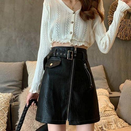 [셀럽하우스]여자 SPGX6042 앞 지퍼 포인트 가죽 스커트 숏 미니 레더 치마