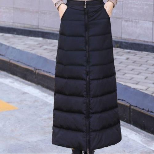 슬림소녀 여성용 방한 누빔 A라인 퀄팅 집업 패딩 롱 스커트 긴치마