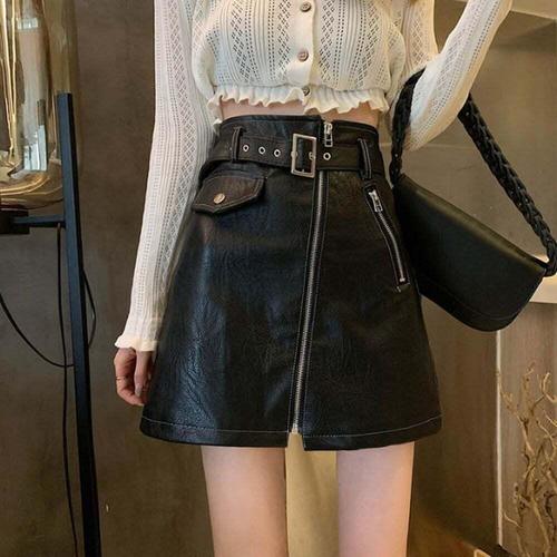 [셀럽하우스]에쁜 USRB9729 앞지퍼 포인트 레더 가죽 지퍼 스커트 치마