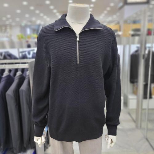 [앤드지]사선조직 반 집업 세미오버 핏 니트티 BZE4EU1203 BK BK_DJ