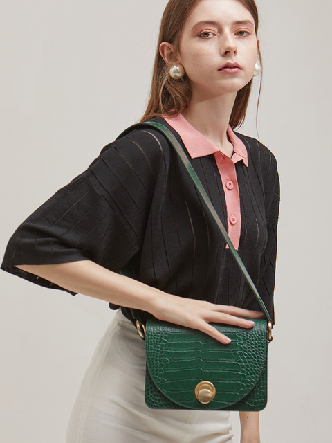 [앤오즈] 악어무늬 덮개 가죽 숄더백 레더 미니 크로스 가방_블랙_네이비_아이보리_베이지