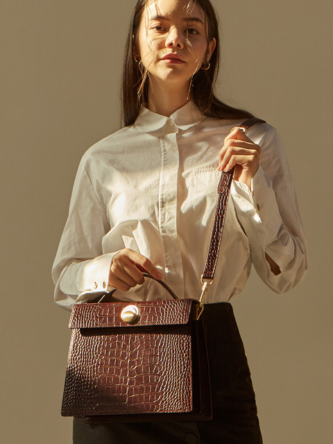 [앤오즈] 악어무늬 가죽 크로스 쇼더백 2 스트랩 레더 가방_버건디_네이비_아이보리