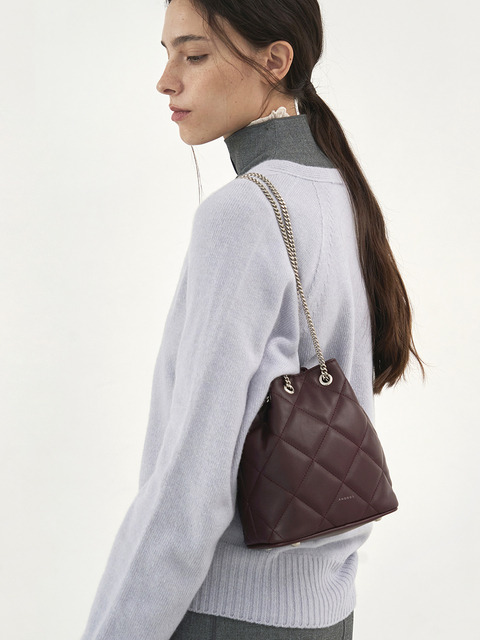 [앤오즈] 가죽 숄더 체인 미니 버킷백 레더 크로스 가방_버건디_아이보리