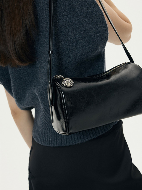 [앤오즈] 덮게 반달 숄더백 메탈 손잡이 가방_블랙_머드_버건디