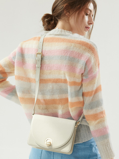 [앤오즈] 2 스트랩 가죽 플랩 숄더백 레더 크로스 가방_그레이_바이올렛_아이보리