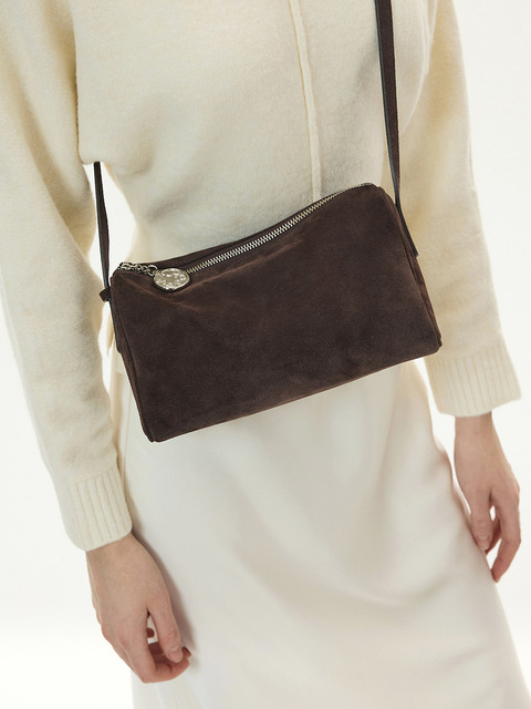 [앤오즈] 스웨이드 가죽 소가죽 리얼가죽 보스턴 호보 숄더 크로스백_블랙_올블랙_다크브라운