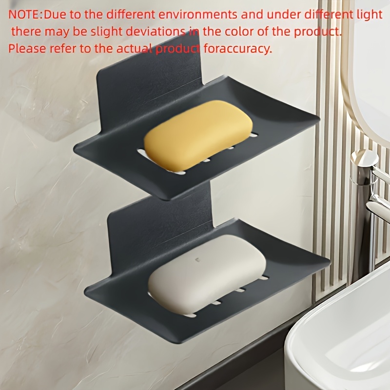 TEMU 벽걸이형 비누 받침대 2개 세트 (드릴 불필요), 물기 제거 디자인, 탄소강 재질, 욕실 비누 보관에 적합, 접착식 및 보조 스티커 포함.