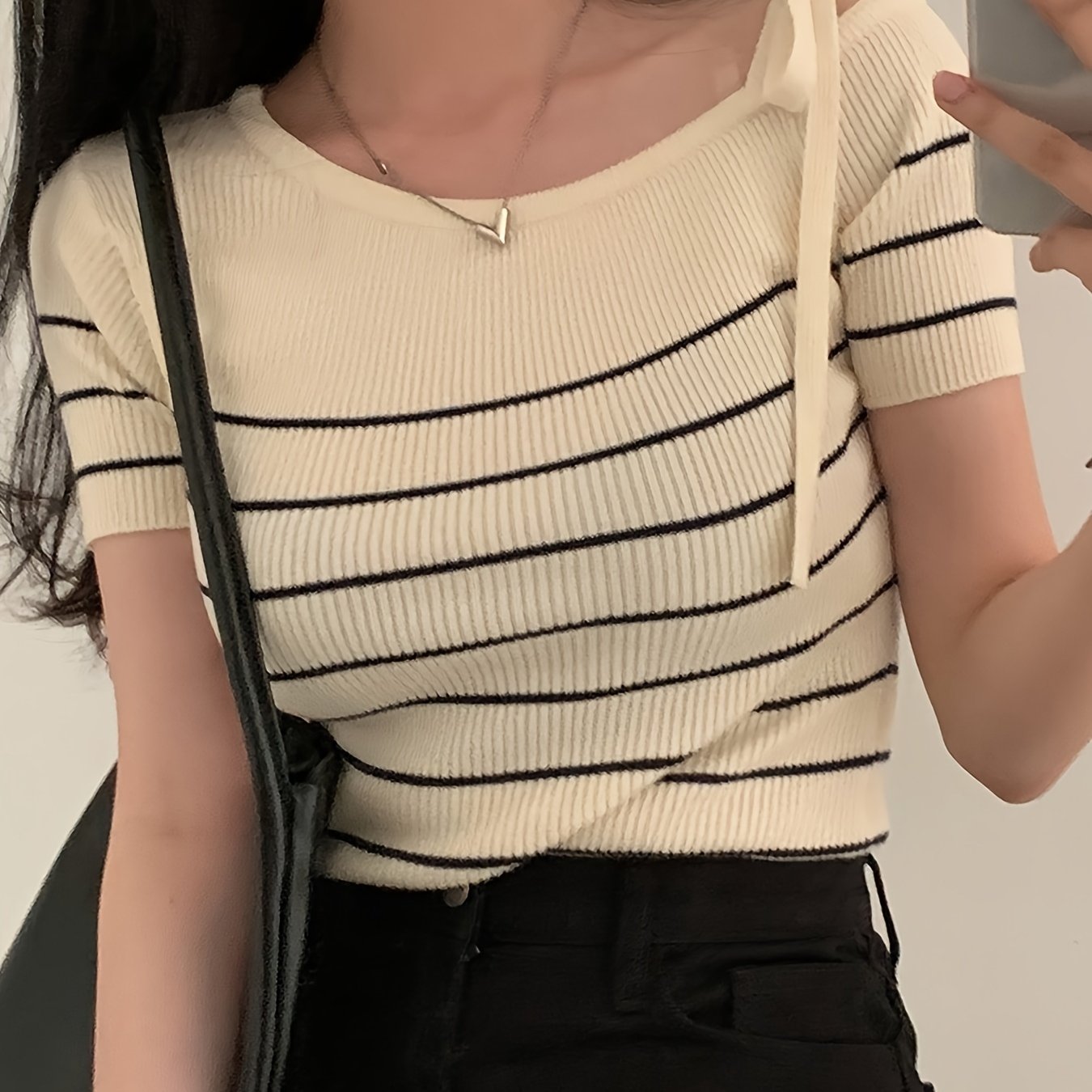 TEMU 여성 솔리드 컬러 오프숄더 매듭 디자인 반팔 탑